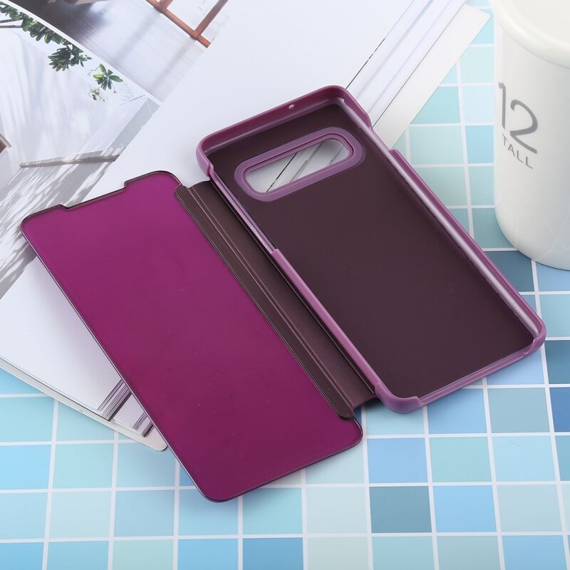 PU Electroplating Mirror Horizontal Flip Leather Case για Galaxy S10 Plus, με θήκη (μωβ)