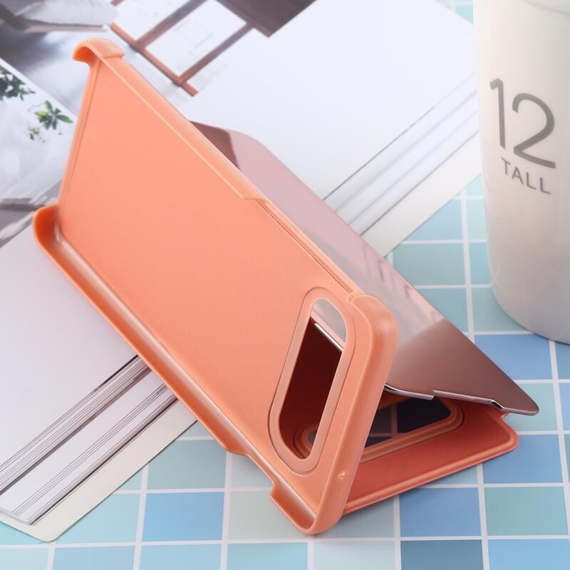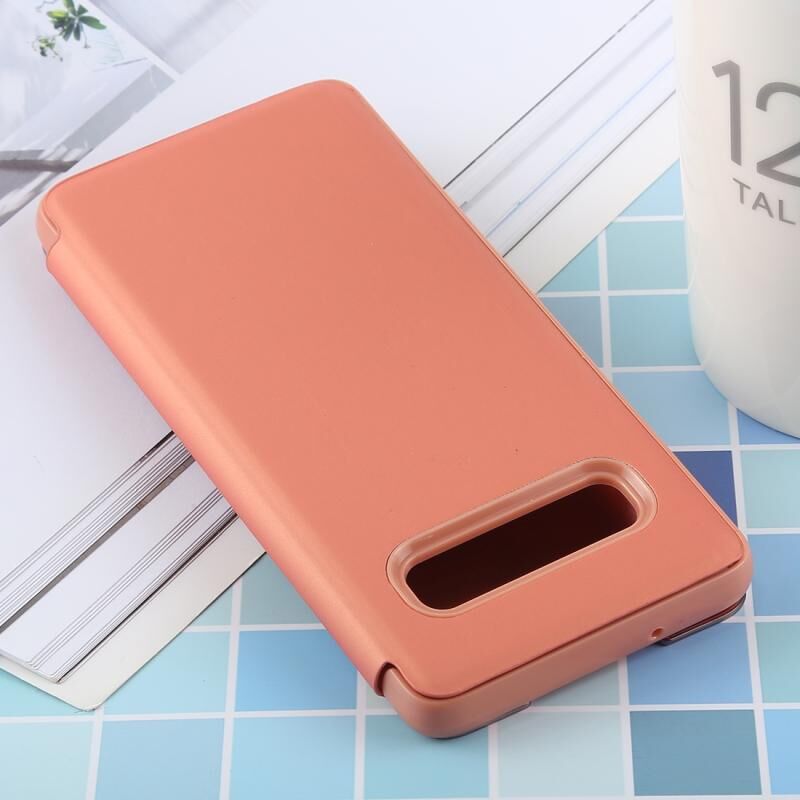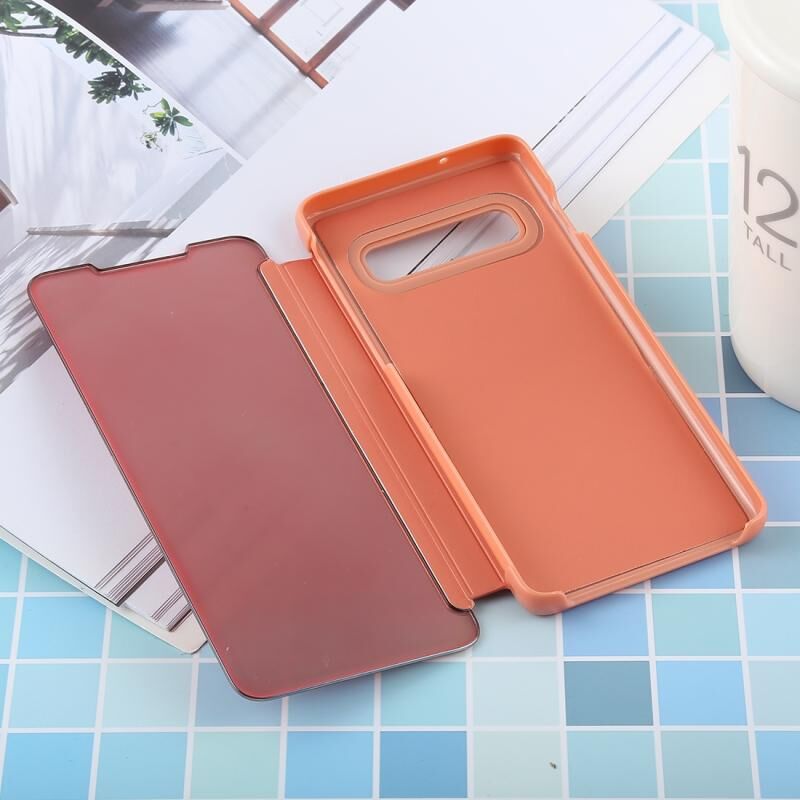 PU Electroplating Mirror Horizontal Flip Leather Case για Galaxy S10 Plus, με θήκη (ροζ χρυσό)