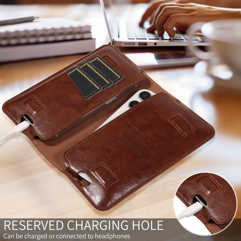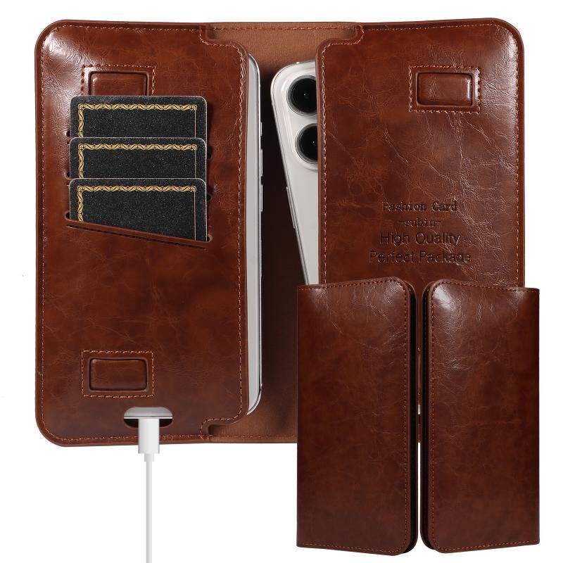 PU Flip διπλό τηλέφωνο υπόθεση κάρτα υποδοχή, μέγεθος: 19 x 11cm (καφέ)