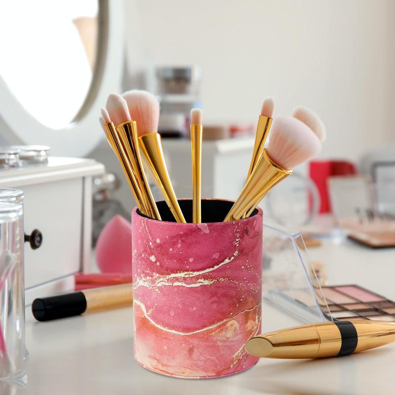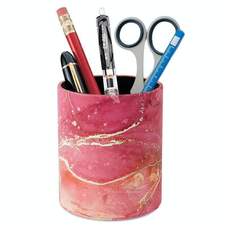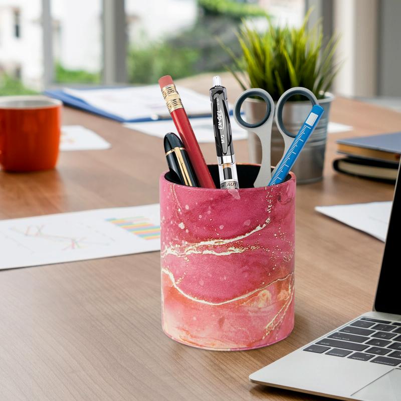 PU Leather Tool Storage Box Desktop Pen Holder(Red Marble)