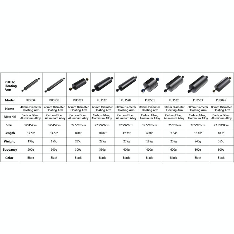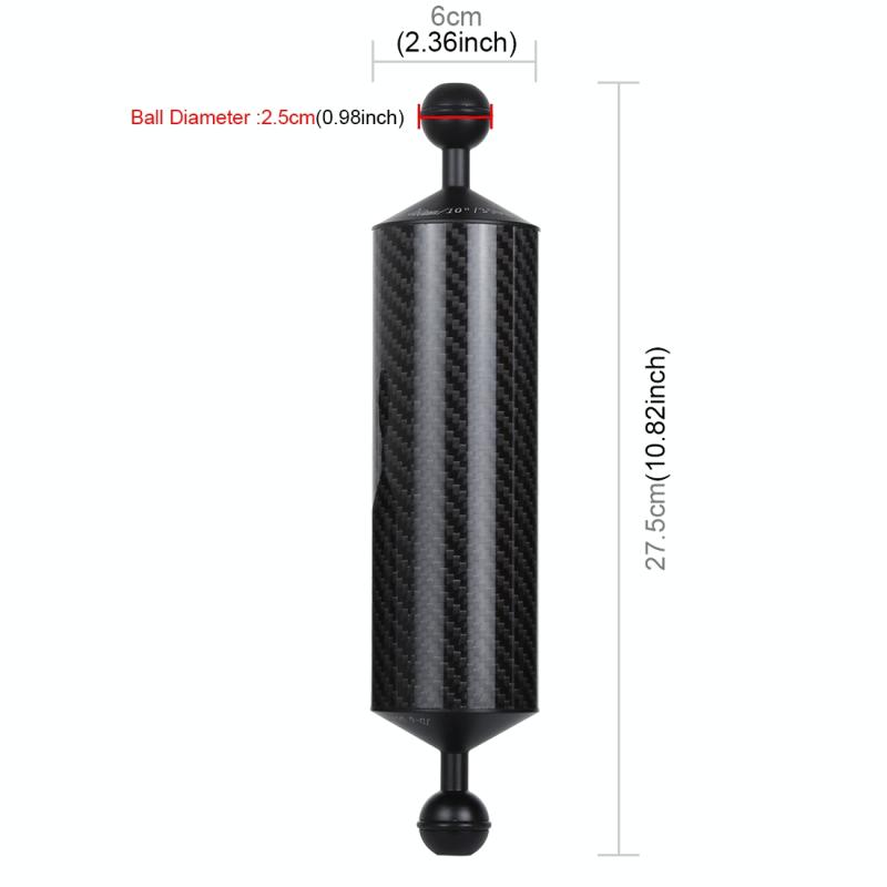 PULUZ 10.82 inch 27.5cm Length 60mm Diameter Dual Balls Carbon Fiber Floating Arm, Ball Diameter: 25mm, Buoyancy: 350g (PULUZ)