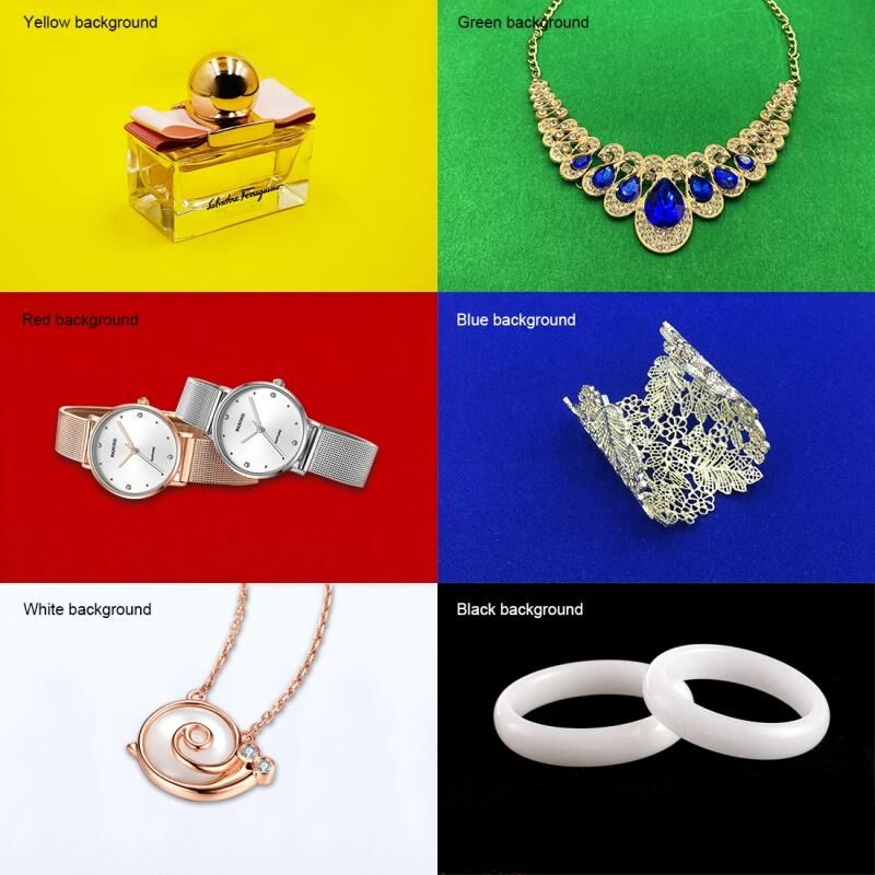 6. Αντικαταστάσιμο φόντο, με φόντο έξι χρωμάτων μαύρου/λευκού/κόκκινου/μπλε/κίτρινου/πράσινου, μπορεί να χρησιμοποιηθεί για να τραβήξετε το επιθυμητό χρώμα φόντου ανάλογα με τα διαφορετικά προϊόντα