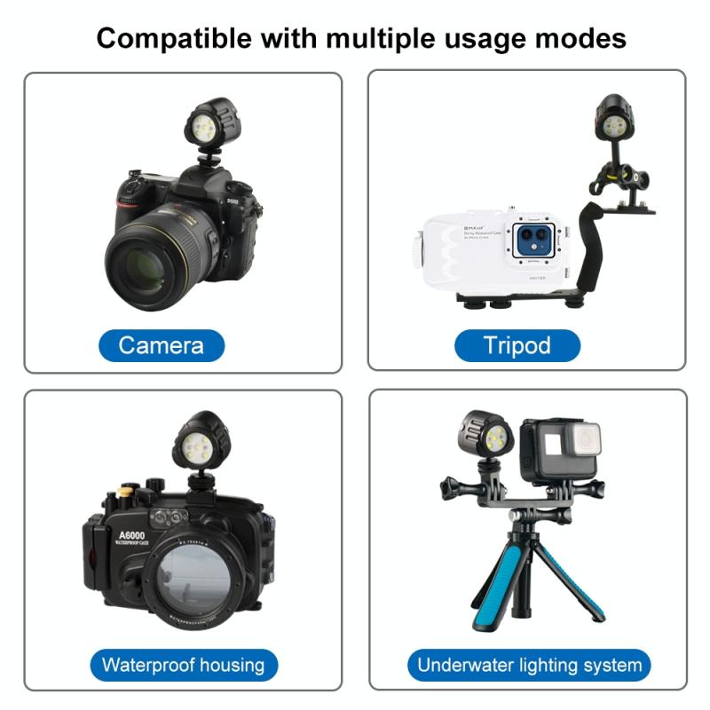 3. Waterproof and rechargeable: this photo light completely waterproof to 130ft (40m) out of the box, no housing needed! Built-in large capacity lithium battery, recharge your video light via the built-in Micro USB port on the back of the device.