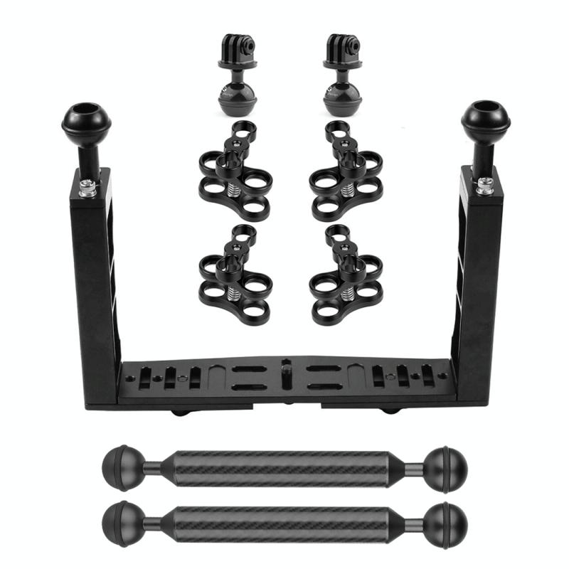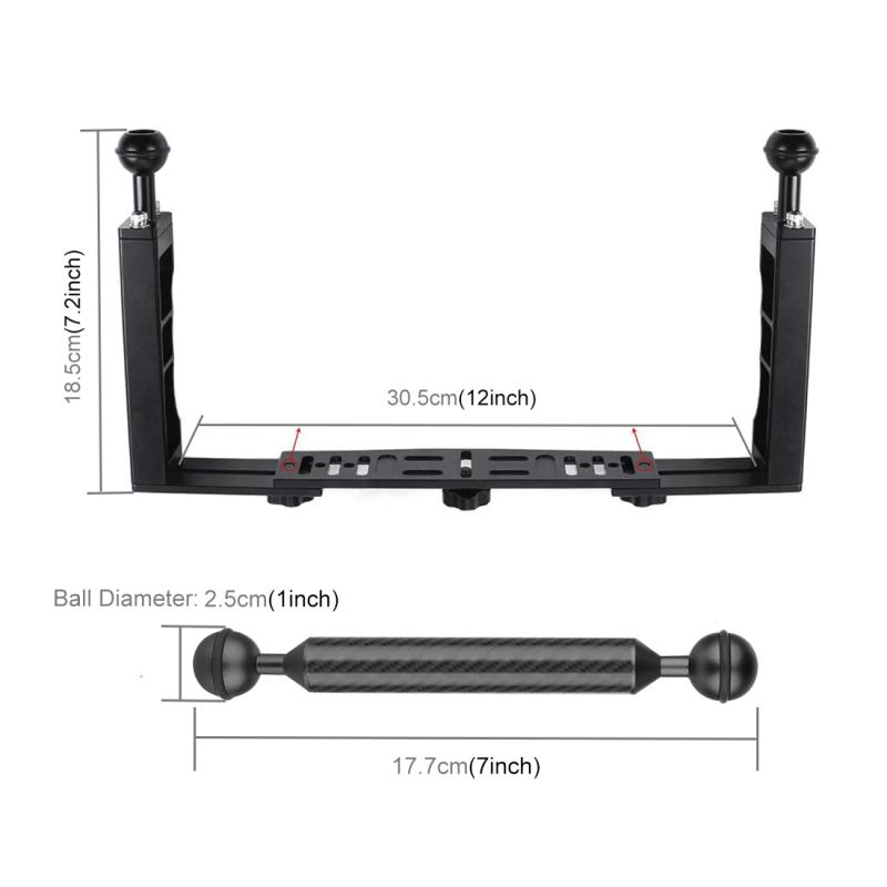 PULUZ Dual Handle Aluminium Tray Stabilizer with 4 x Dual Ball Aluminum Alloy Clamp & 2 x 7 inch Floating Arm & 2 x Ball Head Adapter for Underwater Camera Housings (PULUZ)
