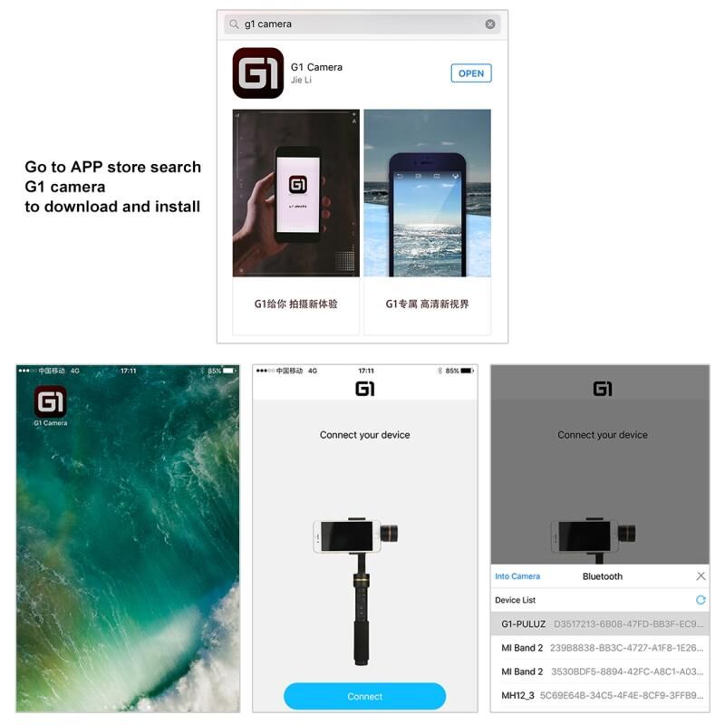 7. Υποστήριξη ασύρματου ελέγχου μέσω bluetooth με τη χρήση της εφαρμογής PULUZ G1 App σε συσκευές iOS και Android. Υποστηρίζει επίσης το τηλεχειριστήριο της εφαρμογής για την απομακρυσμένη λειτουργία πανοραμικής περιστροφής και κλίσης.