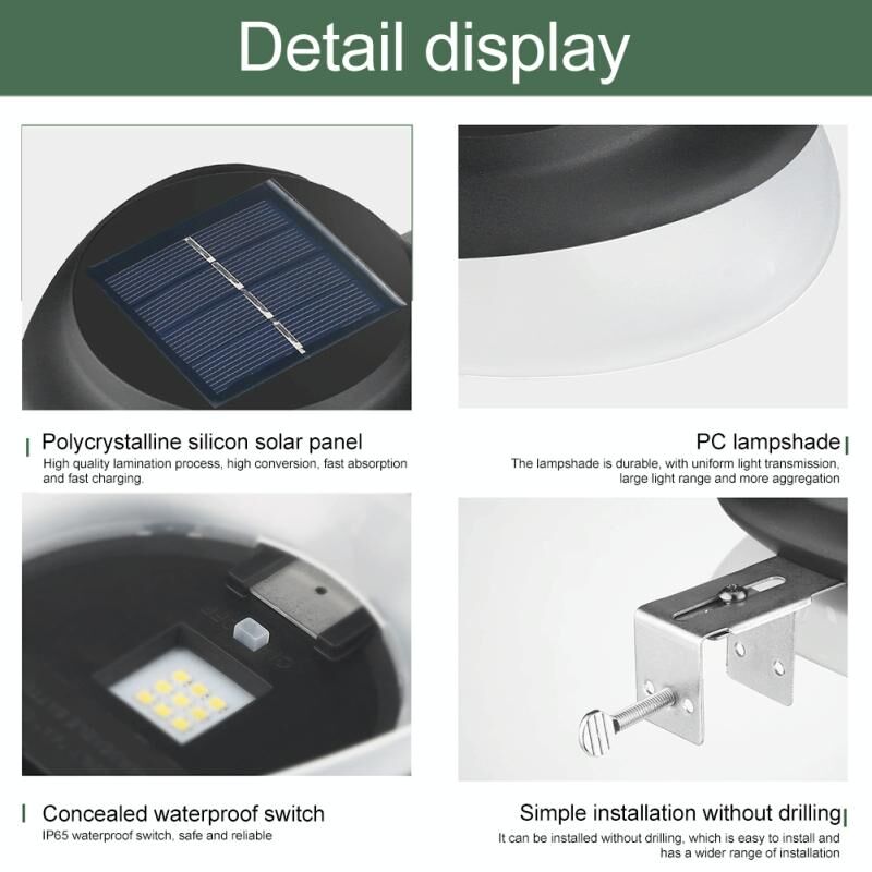 Punch-free ιπτάμενος δίσκος ηλιακός λαμπτήρας υπαίθρια κήπου διακόσμηση τοίχου λαμπτήρας (μαύρο κέλυφος ζεστό φως)