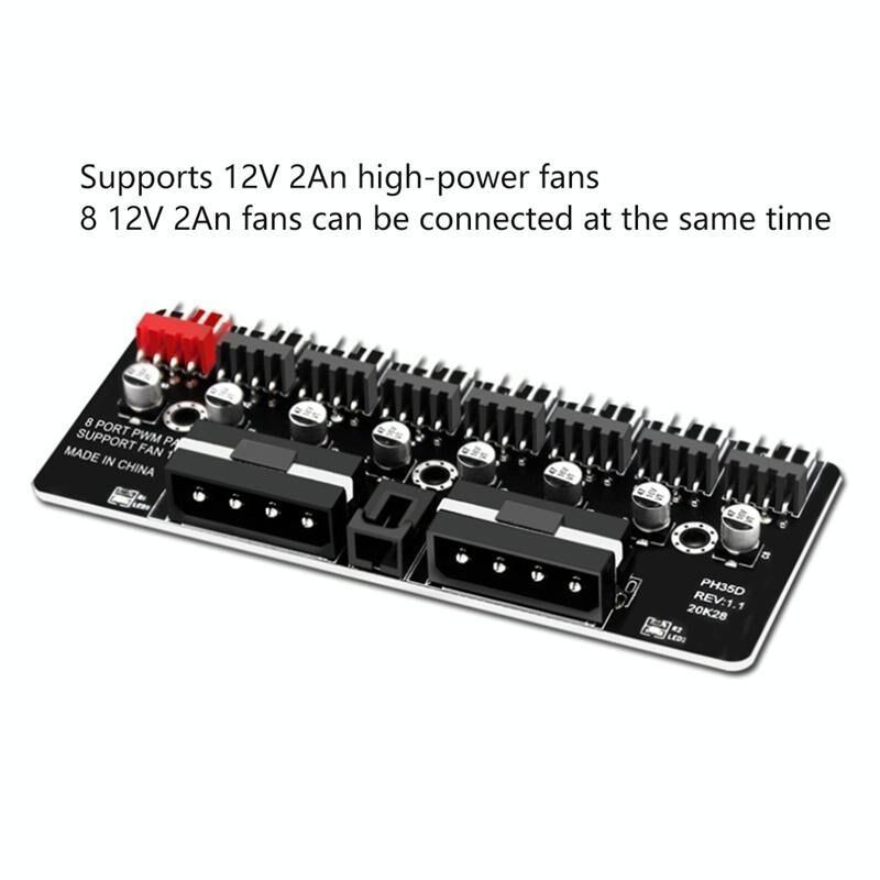 3. Can support 8 12V 2A high-power fans
