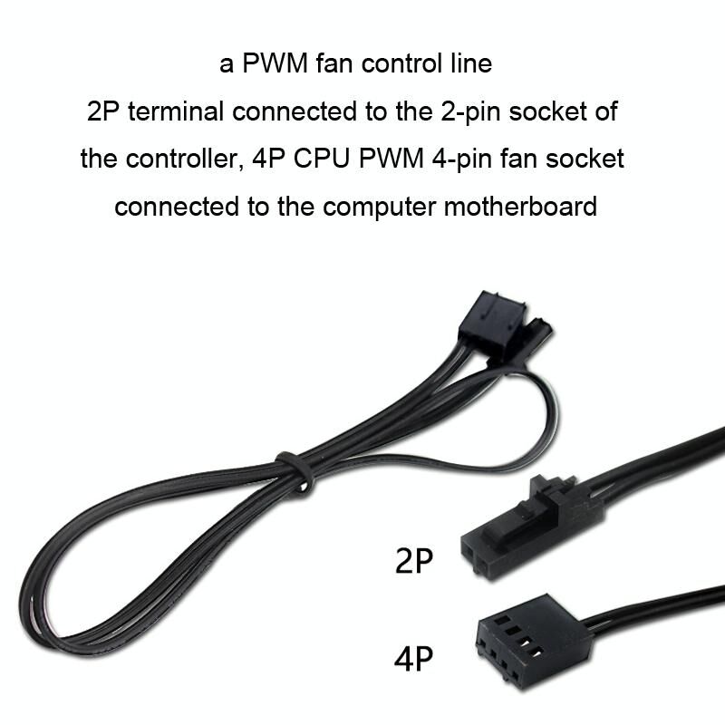 6. Equipped with a 2P to 4P PWM fan control line: 2P terminal connected to the 2-pin socket of the controller, 4P CPU PWM 4-pin fan socket connected to the computer motherboard