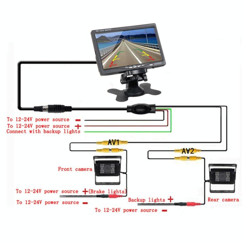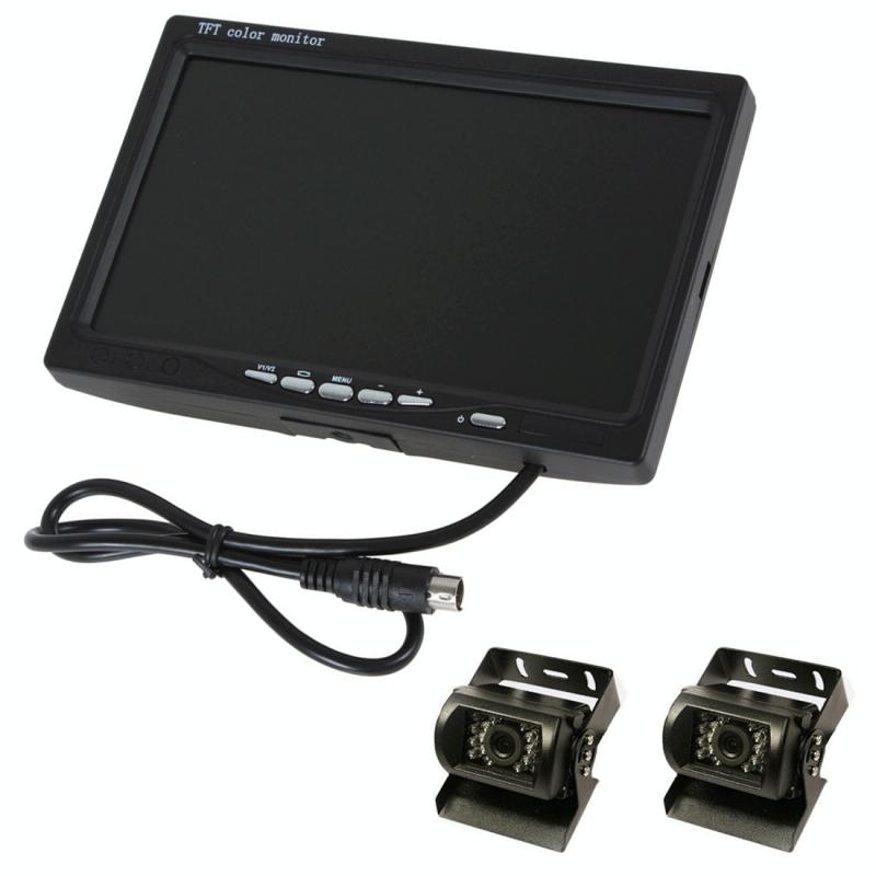PZ-607-2 Wireless Vehicle Truck Dual Backup Camera and Monitor Infrared Night Vision Rear View Camera with 7 inch HD Monitor