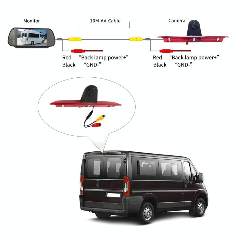 PZ466 Car Waterproof 170 Degree Brake Light View Camera + 7 inch Rearview Monitor for Ford Transit 2014-2015