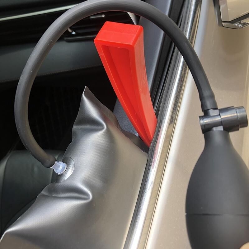 (2). Insert air pump bag into the gap of the car door, squeeze the ball, air bag inflation, the gap is getting bigger