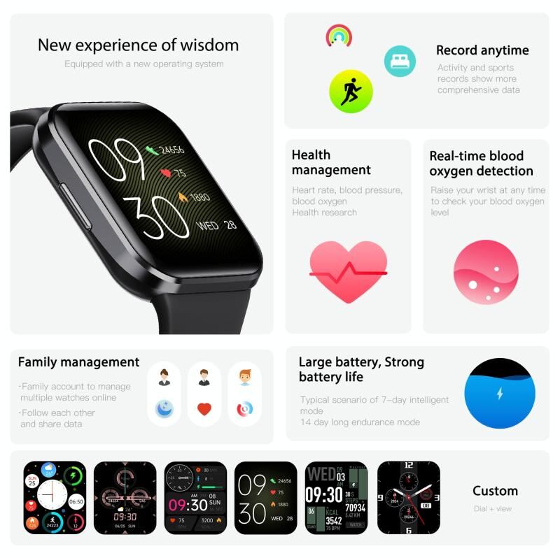 3. Unlimited customization: More than 100 trend-setting combinations are built-in to match your mood and personal outfit. Supports creating and customizing your own fitness watch face from the phone gallery.