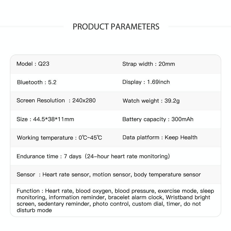 8. Watch strap material: Well-designed detachable wrist strap, soft, light, breathable, and very comfortable to wear.