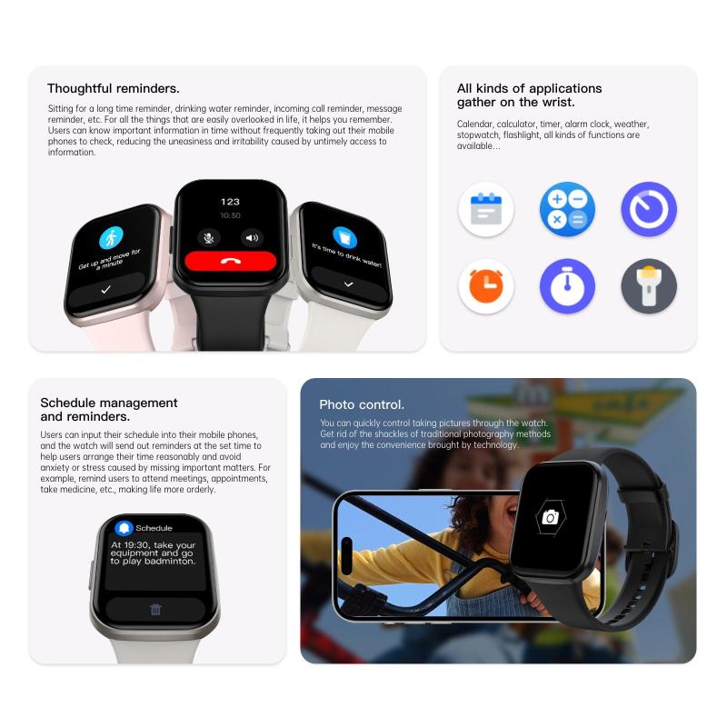 11. Various Applications: support stopwatch, alarm clock, weather, music, photography, calculator, timer, flashlight, calendar and other functions