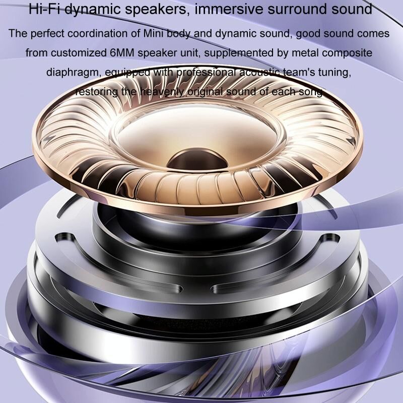 2. Ηχεία κινούμενης έλικας Hi-Fi, μονάδα ηχείου 6 mm, συμπληρωμένη από μεταλλική σύνθετη μεμβράνη, καθηλωτικός surround ήχος, Μίνι σώμα και η αρμονία του ηχητικού εφέ