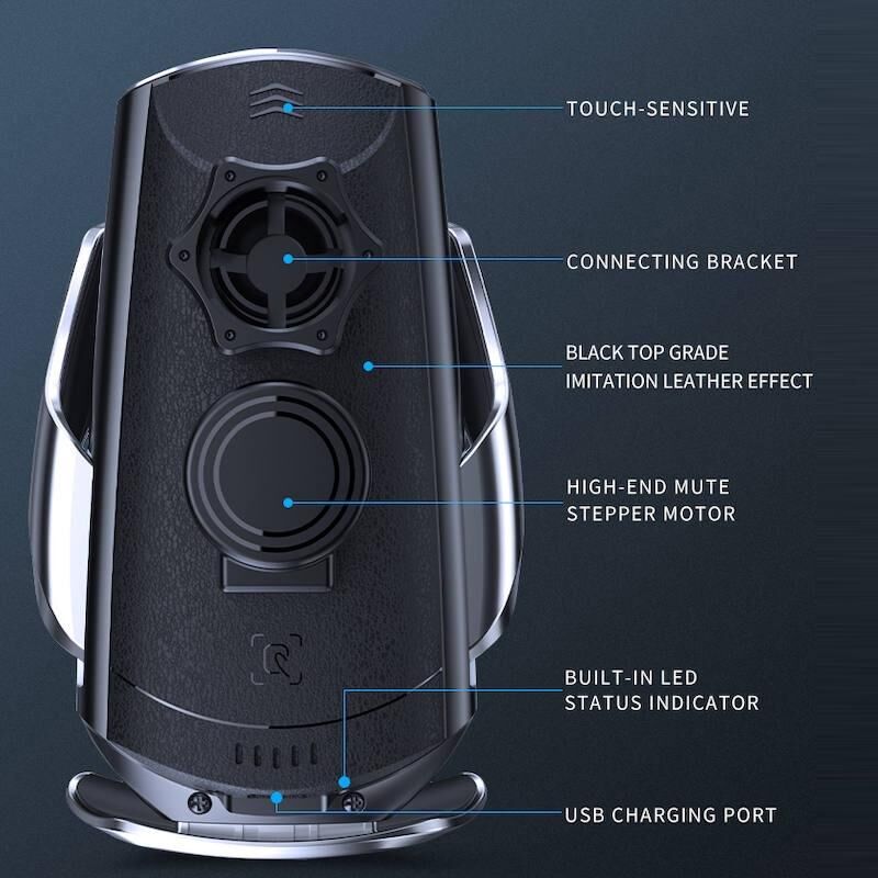 Βάση στήριξης τηλεφώνου ασύρματης φόρτισης αυτοκινήτου με υπέρυθρο, επαγωγή, μαγνητική σύνδεση Micro USB + 8 Pin + Type-C / USB-C (Μαύρο)