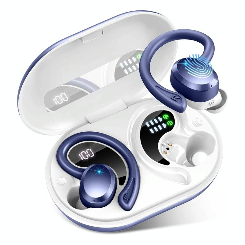 Q38 Ear-mounted LED Digital Display Wireless Bluetooth Earphone(Blue)