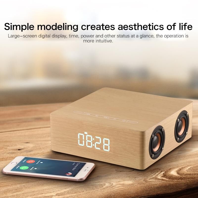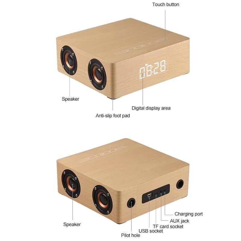Q5C Multifunctional Wooden Touch Clock Display Bluetooth Speaker, Support TF Card & U Disk & 3.5mm AUX(Walnut)