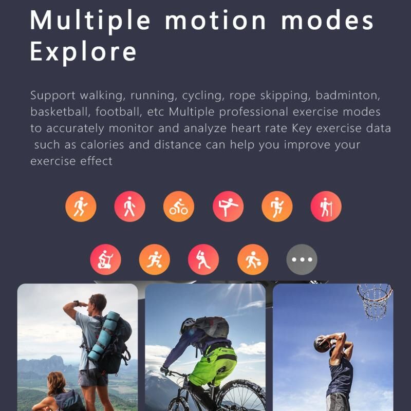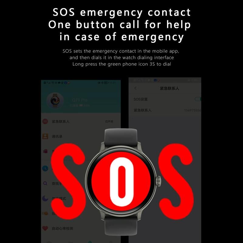 16. Functions: Bluetooth calling, music playback, 24-hour heart rate monitoring, massive dial switching, full touch, smart photo, physiological period, password, calculator, one-key SOS, adjustable screen time, call reminder/rejection, message Storage, multi-sport mode, changing standby interface, stopwatch, address book, call record, exercise record (pedometer, calorie burn, mileage), information reminder, etc.