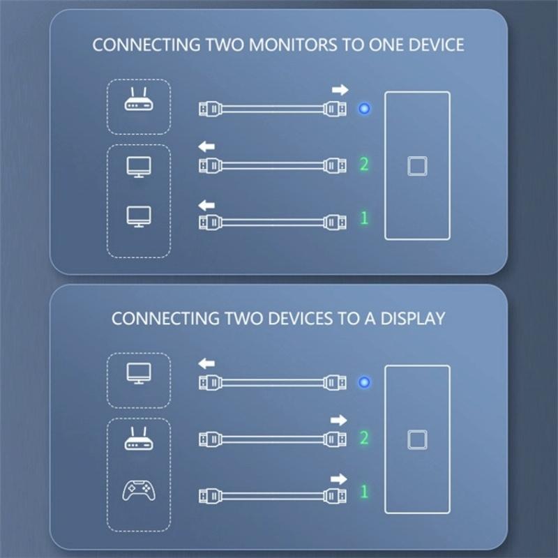 1.You can connect 2 HD sources to 1 HD monitor, perfect for 2 HD input signal to 1 large monitor or TV