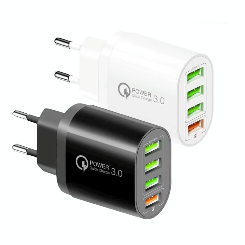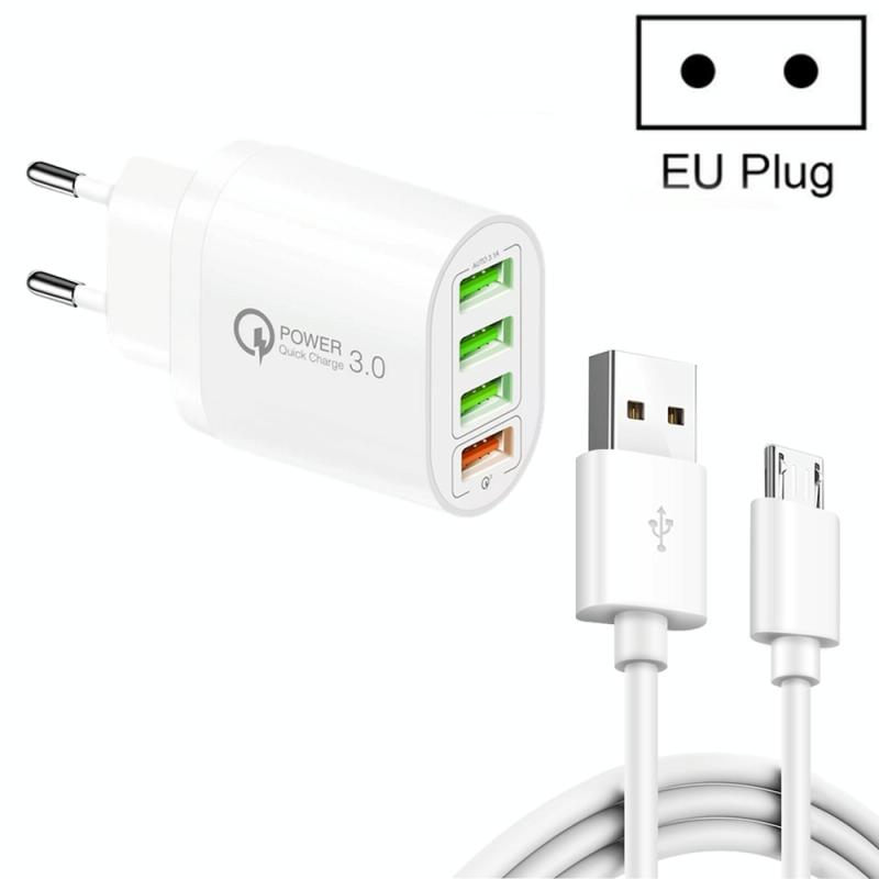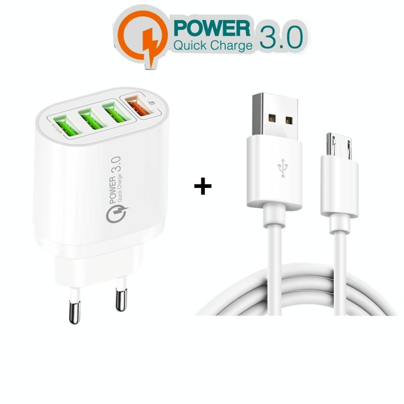 Φορτιστής QC-04 QC3.0 + 3x USB2.0 με Καλώδιο Micro USB, EU Plug (Λευκό)