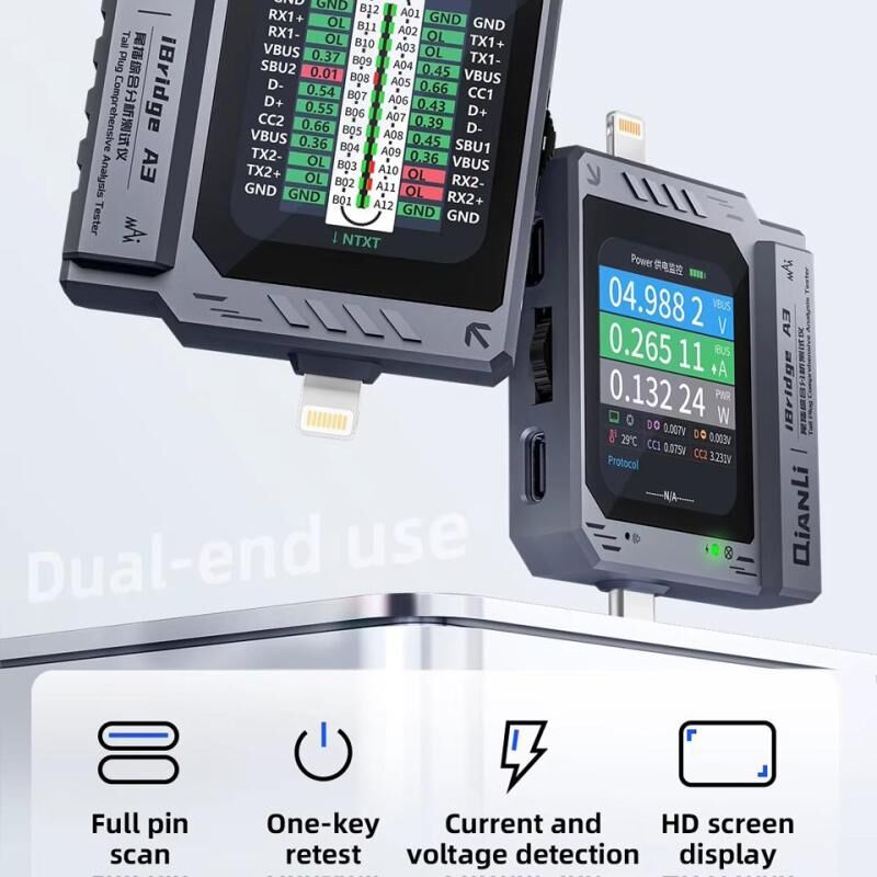 2. Support Lightning and Type-C interface devices, automatically locks charging faults, allowing one-step retest without worrying about deviations