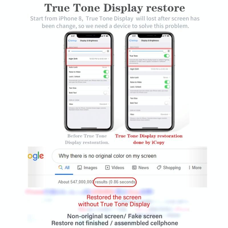 2. This allows you to transfer the chip data from the original iPhone screen to a replacement screen. This procedure restores the original color.