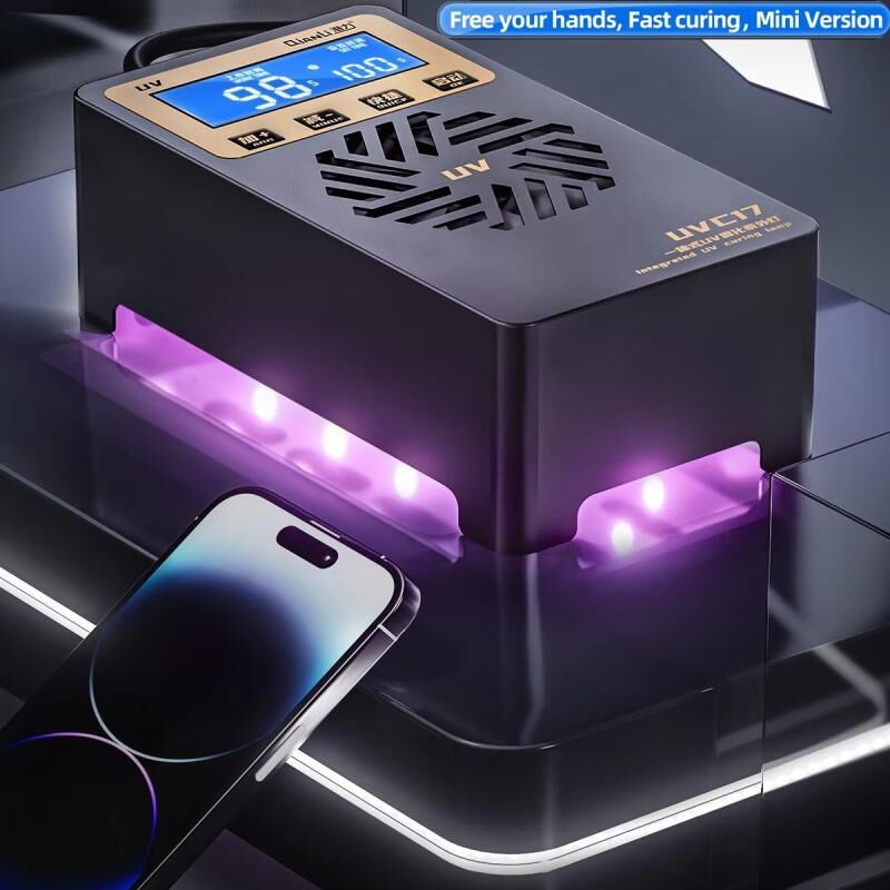 1. UVC17 integrated UV curing lamp frees your hands, fast curing, dual wavelengths of UV LED chips, curved surfaces wrinkle-free, powerful heat dissipation, large power, small body, big curing area