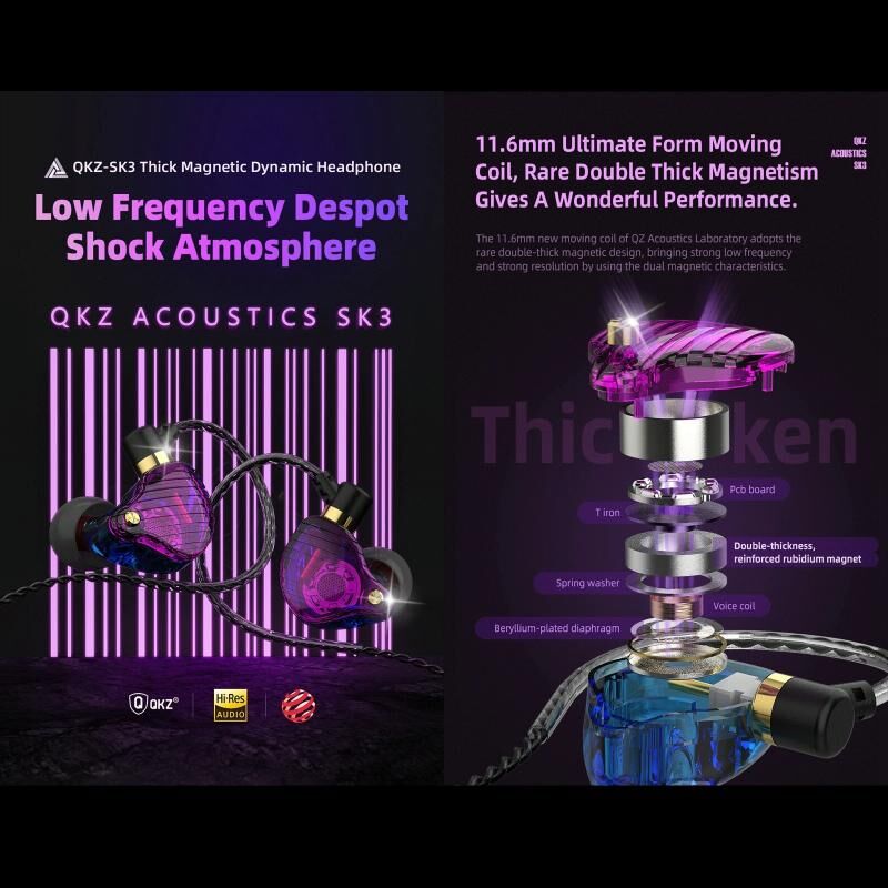 QKZ SK3 3.5mm Sports In-ear Wired HIFI Bass Stereo Sound Earphone with Mic(Transparent) (QKZ)
