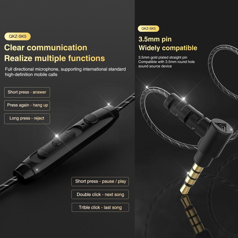 QKZ SK5 In-ear Subwoofer Wire-controlled Music Earphone with Mic(Pink) (QKZ)
