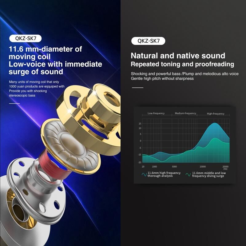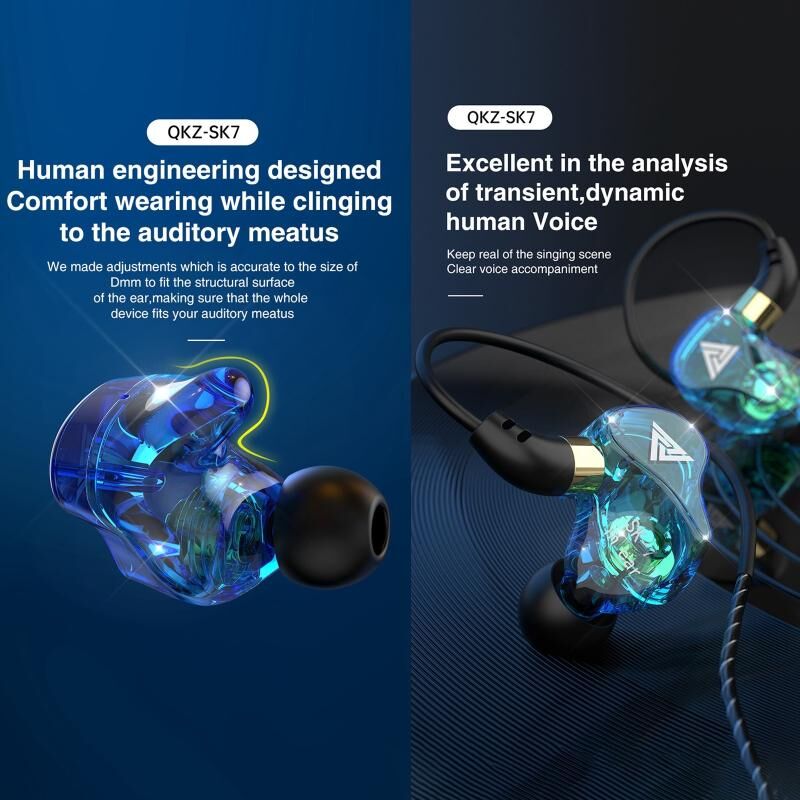 QKZ SK7 Αθλητικά ενδοωτικά ακουστικά 3,5mm με καλώδιο, οδηγό χαλκού, HIFI Stereo με μικρόφωνο (Σκούρο Μπλε) (QKZ)