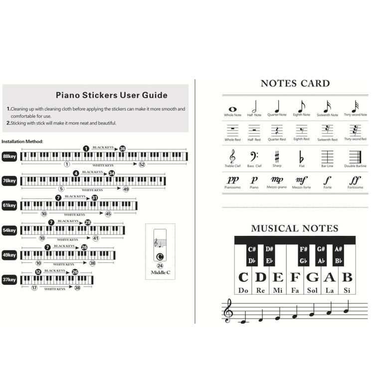 5. Εύκολη εγκατάσταση, εντοπίστε το πλήκτρο μεσαίου Ντο (C) που είναι σημειωμένο στην ετικέτα πλήκτρων πιάνου για να ταιριάξετε, πατήστε το ίδιο πλήκτρο στο πιάνο και στη συνέχεια ισιώστε και στοιβάζετε τις νότες στο πληκτρολόγιο.