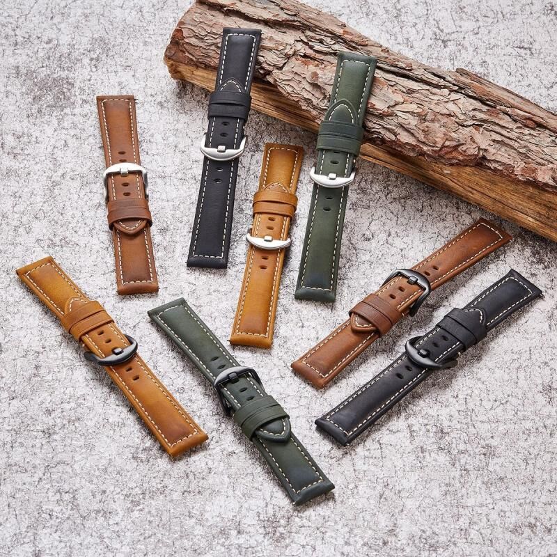 Λουράκι Samsung Huawei Quick Release Crazy Horse Δέρμα 24mm (Στρατιωτικό Πράσινο Μαύρο Buckle)