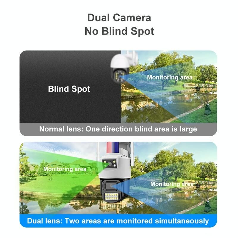 2. Περιστροφή πανοραμικής θέασης 360 μοιρών αμφίδρομης κλίσης/περιστροφής, παρακολούθηση διπλού φακού χωρίς κενά