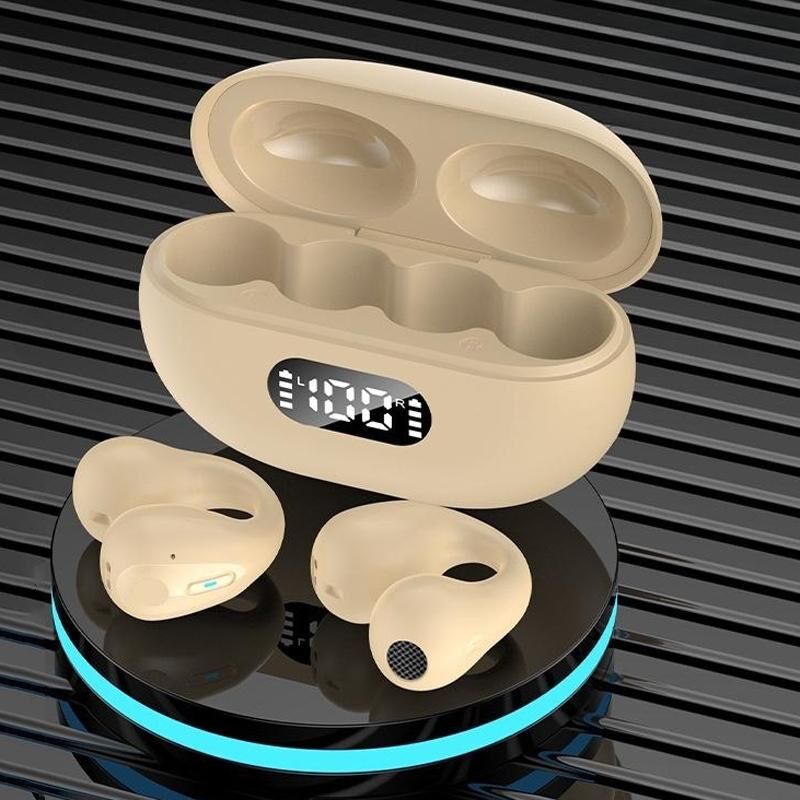 R15 LED Digital Display Ear Clip Wireless Noise Reduction Bluetooth Headphone(Khaki)
