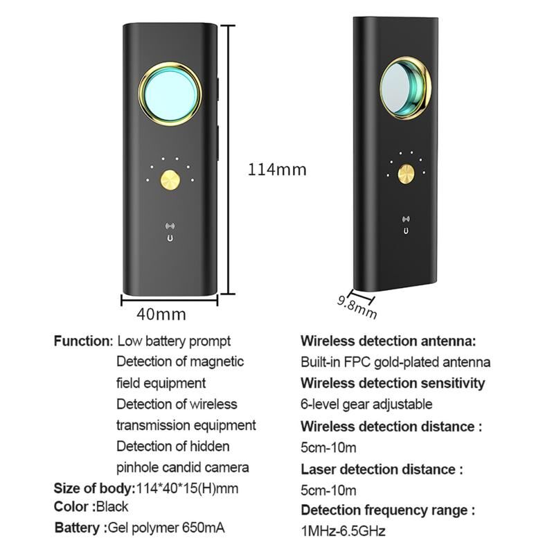 8. Λειτουργία: Προτροπή χαμηλής ισχύος, ανίχνευση συσκευής μαγνητικού πεδίου, ανίχνευση συσκευής ασύρματης μετάδοσης, ανίχνευση συσκευής φακού φωτογραφικής μηχανής pinhole candid