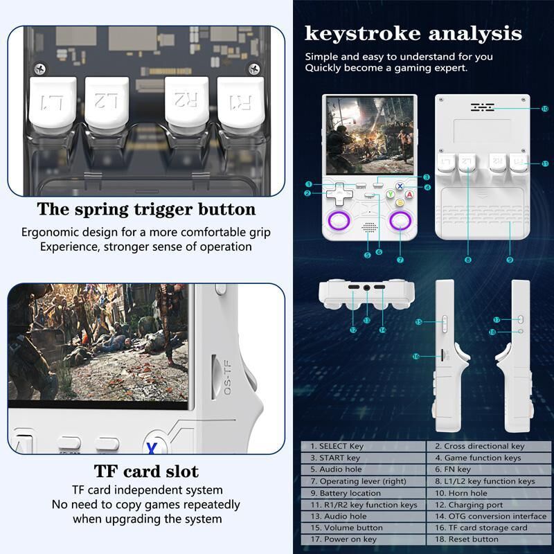 1. R36 Ultra gaming console with built-in Wi-Fi, enabling easy online multiplayer battles without requiring external Wi-Fi adapters.