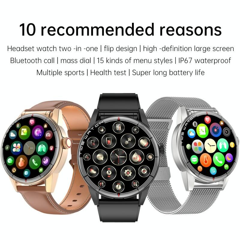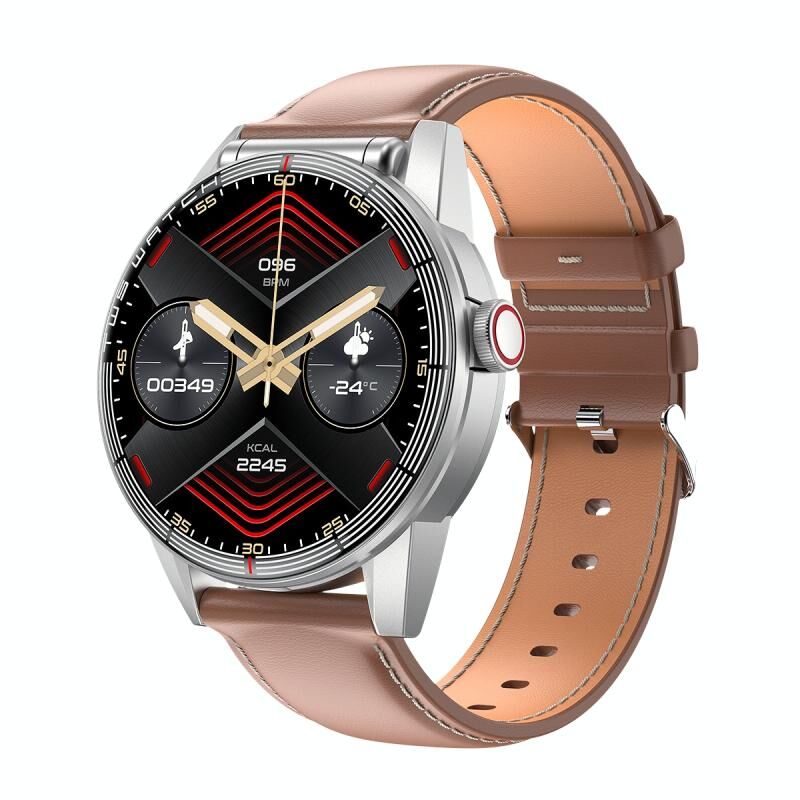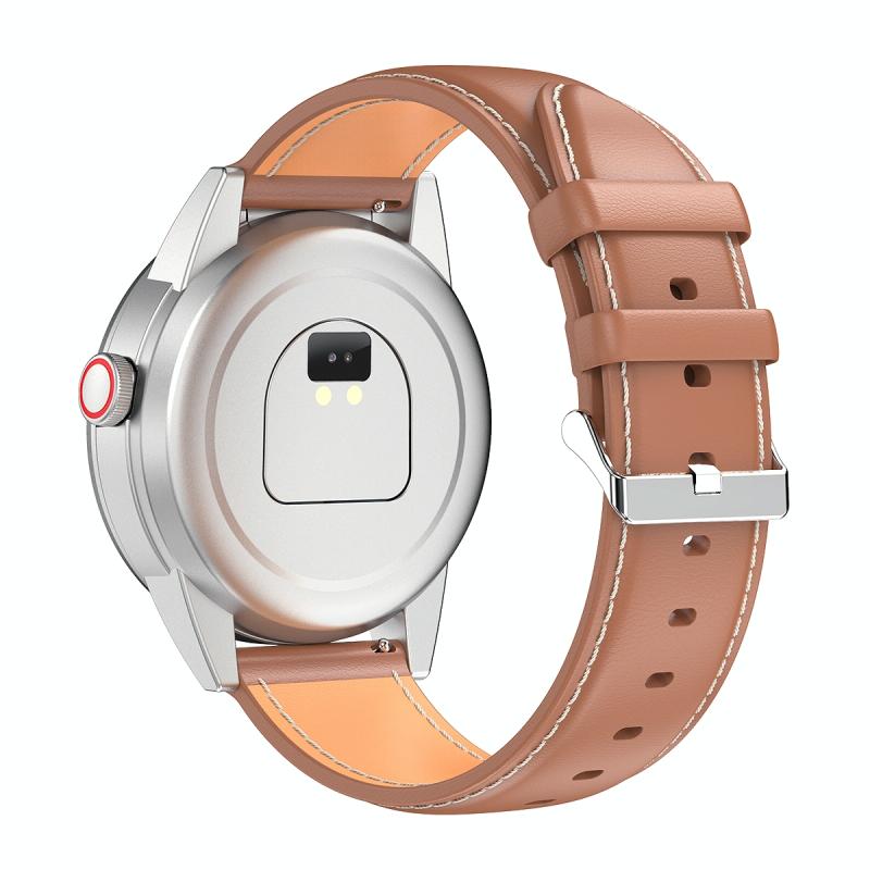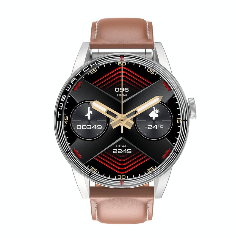 R6 1.32 inch Round Screen 2 in 1 Bluetooth Earphone Smart Watch, Support Bluetooth Call / Health Monitoring(Brown Leather Strap)