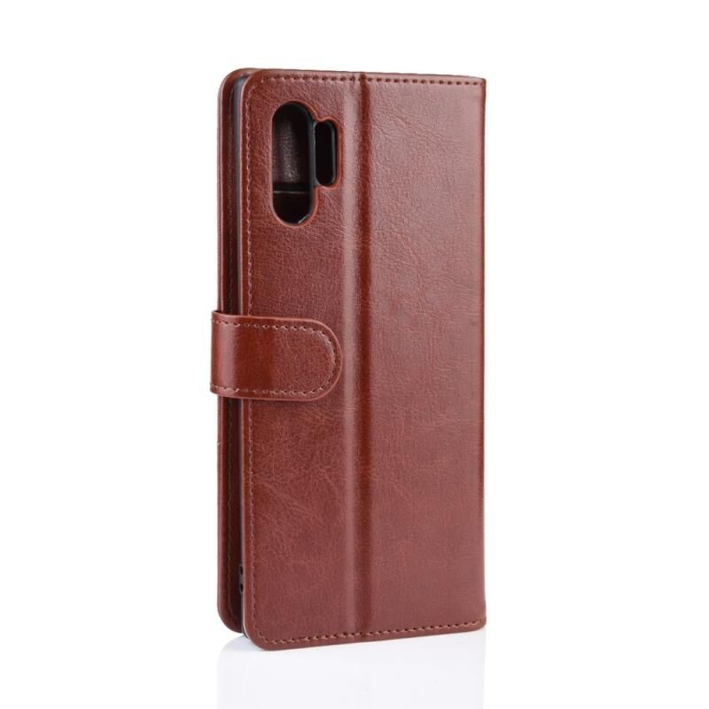 Θήκη δέρματος R64 με μονή αναδίπλωση και οριζόντια αναστροφή για Galaxy Note 10+, με βάση & υποδοχές καρτών & πορτοφόλι (μαύρο)
