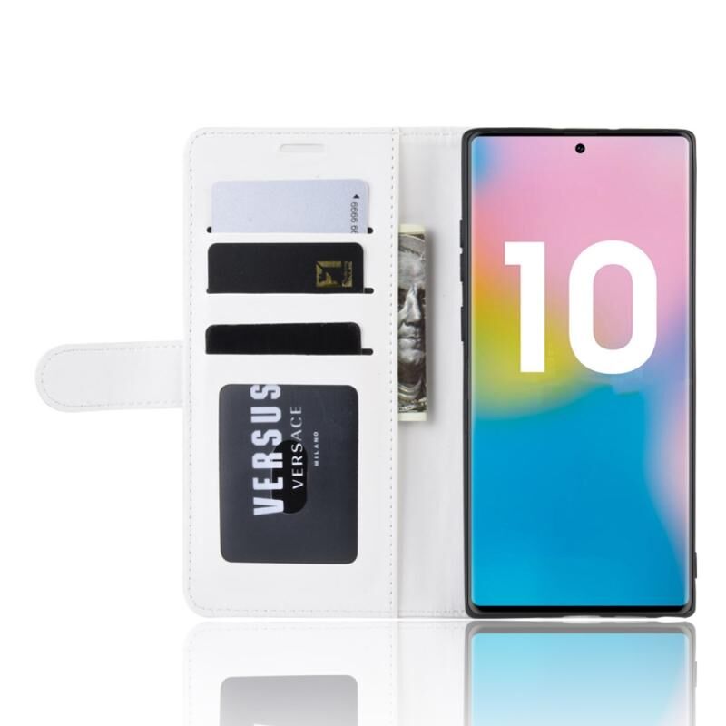 Θήκη δέρματος R64 με μονή αναδίπλωση και οριζόντια αναστροφή για Galaxy Note 10+, με βάση & υποδοχές καρτών & πορτοφόλι (μαύρο)