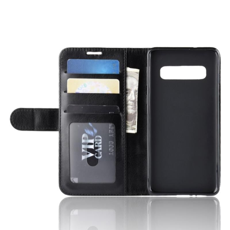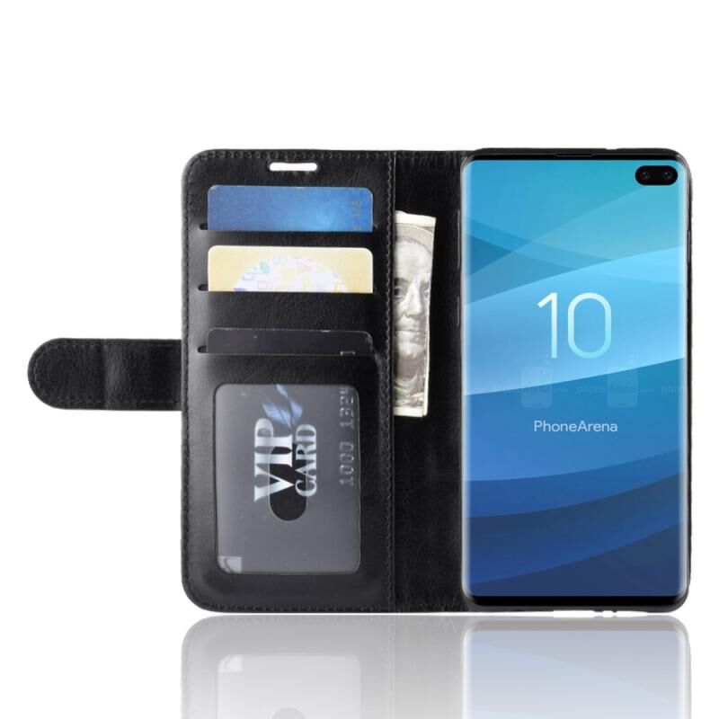 R64 Texture Single Fold Horizontal Flip Leather Case για Galaxy S10+, με θήκη & υποδοχές για κάρτες & πορτοφόλι (Μαύρο)
