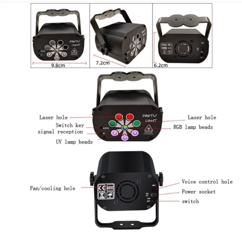 7. Πολύχρωμο εφέ φόντου LED + αντανάκλαση UV + 60 σχέδια κόκκινου και πράσινου laser