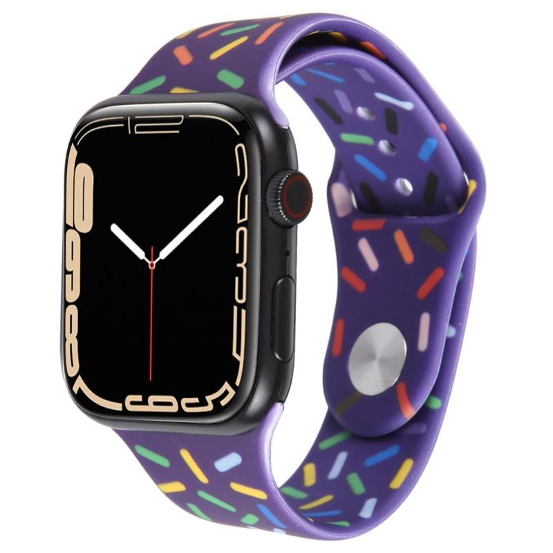 Λουράκι για Apple Watch 5 44mm Rainbow Raindrops από σιλικόνη (Σκούρο μωβ)