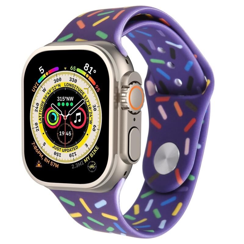 Λουράκι για Apple Watch SE 2023 44mm Rainbow Raindrops από σιλικόνη (Σκούρο μωβ)