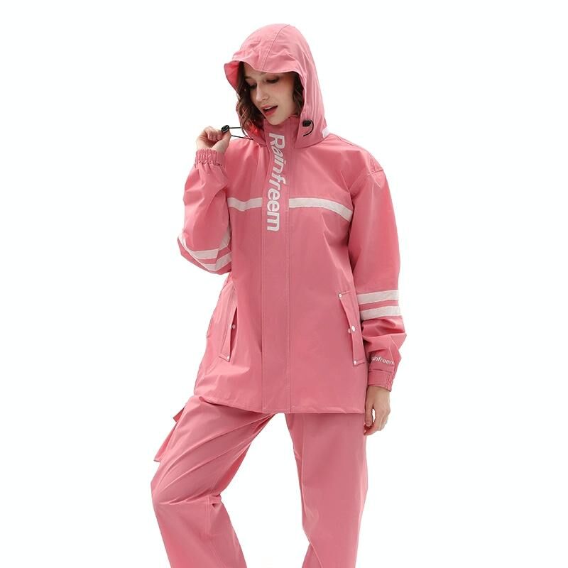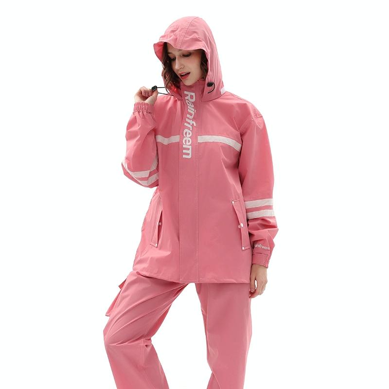 Raninfreem Outdoor Fashion Double Riding Reflection Raincoat Rain Pants Suit S(Cherry Powder) (Raninfreem)