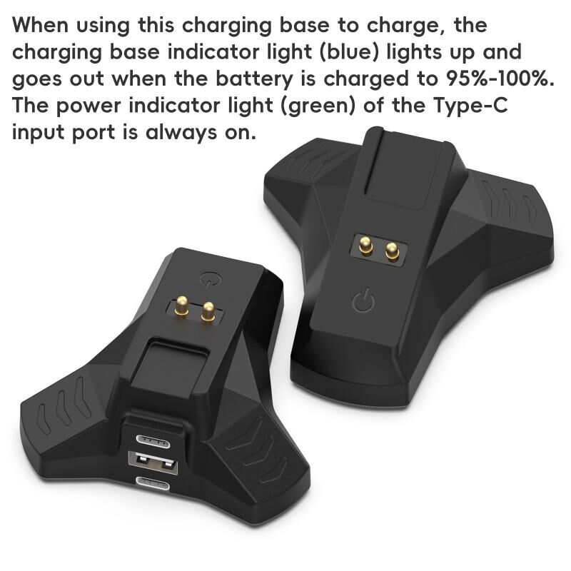 5. Κατά τη φόρτιση με αυτή τη βάση φόρτισης, η ενδεικτική λυχνία της βάσης φόρτισης (μπλε) είναι αναμμένη και η φόρτιση σβήνει μεταξύ 95% Mel και 100%. Η ενδεικτική λυχνία ισχύος της εισόδου Type-C (πράσινη) είναι πάντα αναμμένη.