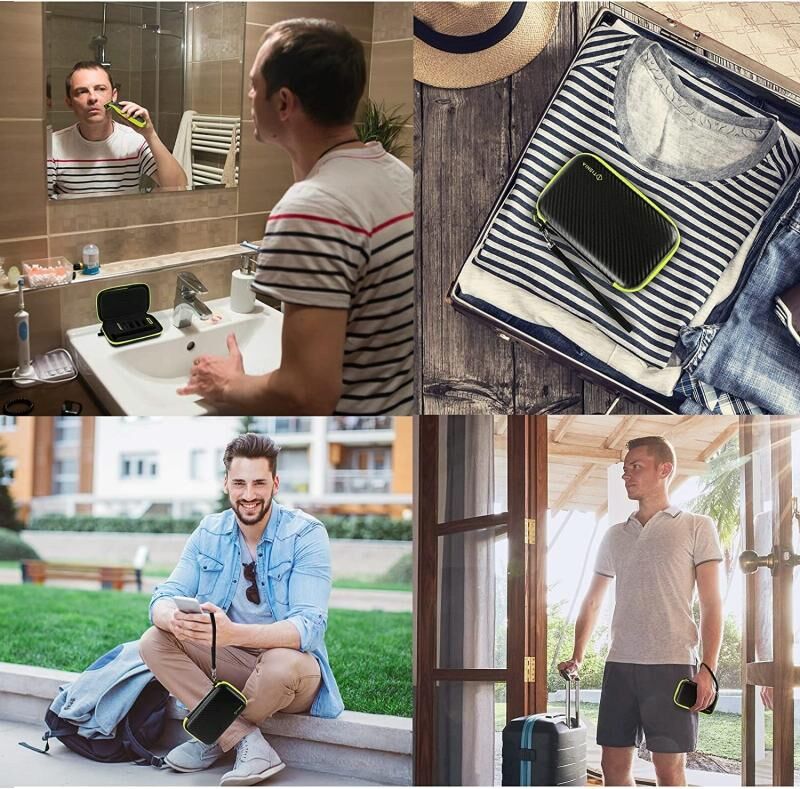 3. Ασφαλής και μοντέρνα εκτύπωση: ενσωματωμένο αποσπώμενο σφουγγάρι, καλή αντοχή σε κρούσεις. Βεβαιωθείτε ότι το ξυριστικό δεν θα καταστραφεί κατά τη διάρκεια του ταξιδιού. Ο σχεδιασμός εκτύπωσης του κελύφους καθιστά τη θήκη κομψή, μοντέρνα, απλή και γενναιόδωρη.