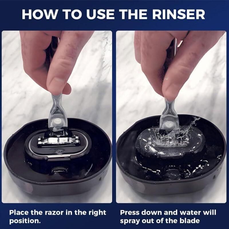 3. No need to disassemble the razor, the rinser sprays a directional stream of water between the razor blades.