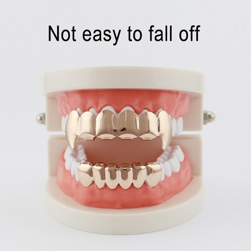 Real Gold Electroplating Halloween Decoration Denture And Tusk Suit COS Props(Rose Gold)
