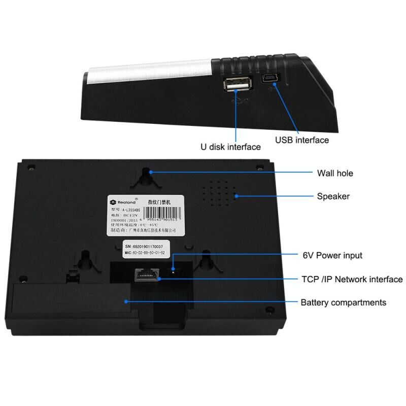 14. Access control interface: Wiegand input/output(26/34), exit button input, door sensor input, bell relay, door relay, tamper input